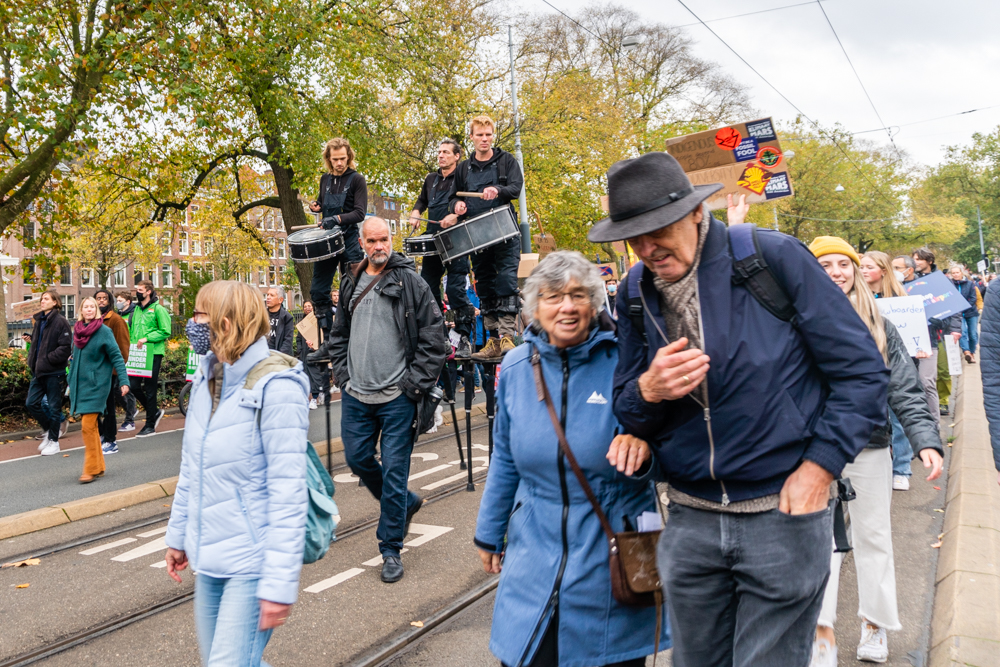 Yesterday I took part in the climate march in Amsterdam. The demonstration had started on Dam Square and after the opening speeches, the demonstration would move through the city centre towards the Westerpark. I was a bit late because I had another appointment first and was able to join somewhere halfway. A huge crowd of people were present, despite the cold weather and the corona measures. But the atmosphere was friendly and people tried, as far as possible, to keep their distance. Many children, young people and young families took part in the parade, but also the elderly, and people from all backgrounds and cultures. It was a pleasure to make a photo reportage of this public event.