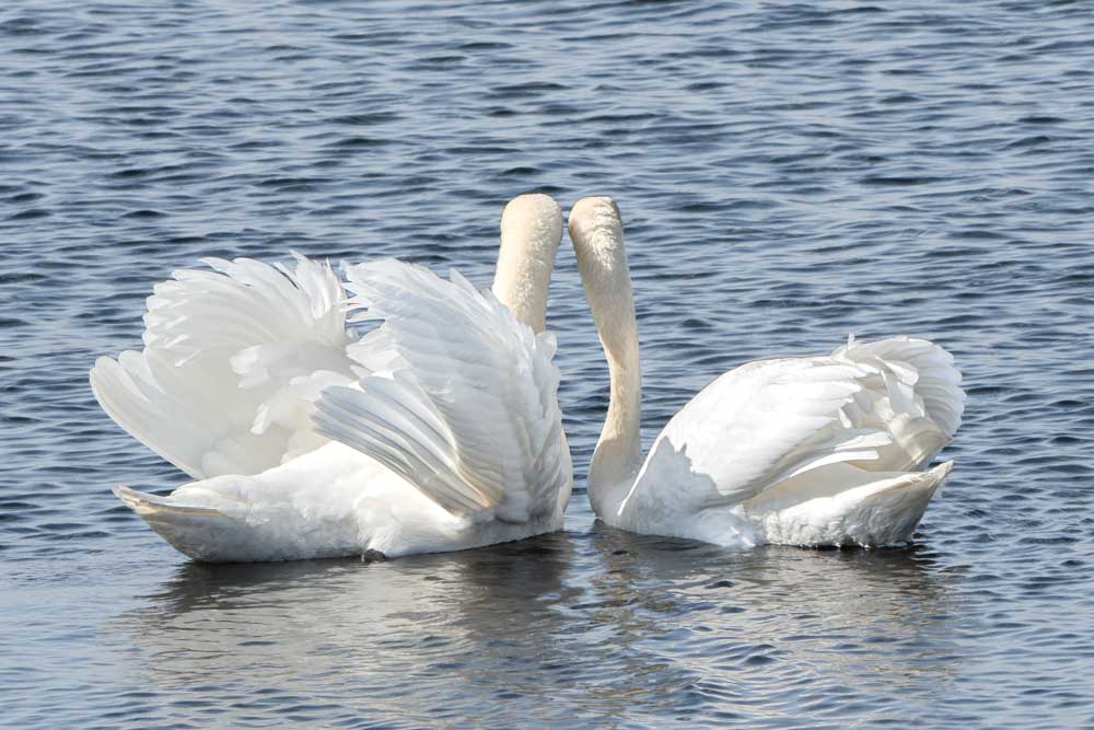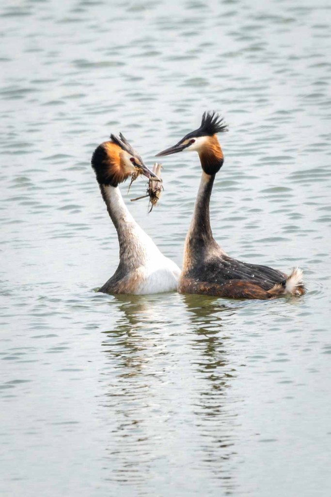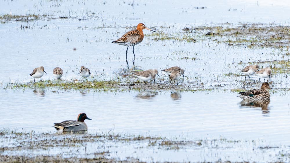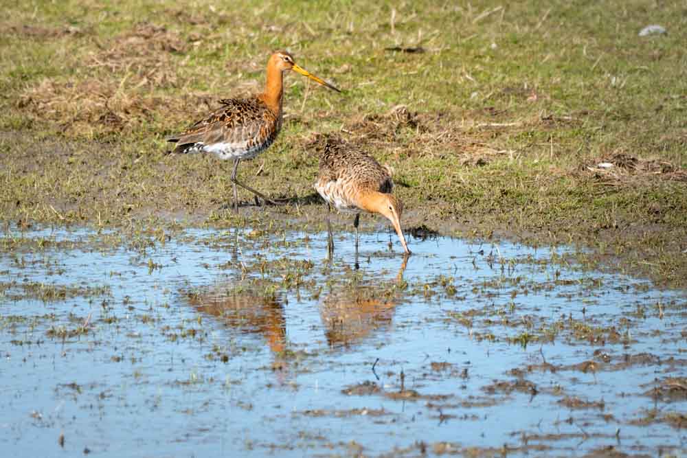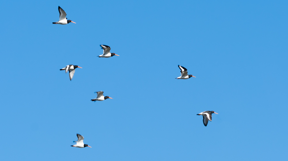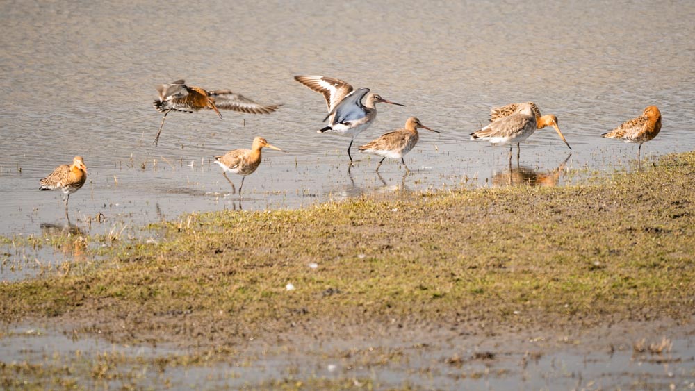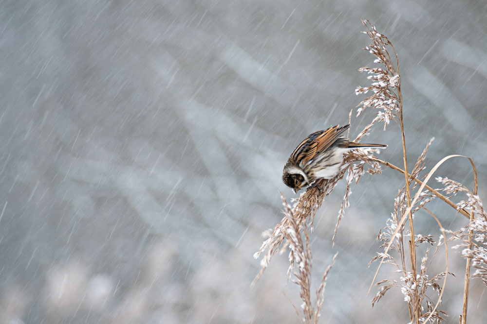 Not a moment to lose. Snow storm, wind chill -11 degrees C., wind force 7, code red: no weather to go outside, so anyway! Swinging on the reeds, this reed bunting continues to diligently peck seeds. Much needed food to stay alive… Amsterdam Southeast, NLAmsterdam Southeast, NL.m Zuidoost, NL.‘Bonte Pieten’ in flight. A group of oystercatchers flies overhead, their black and white plumage and orange beaks, eyes and feet stand out against the blue sky. It’s not surprising that they are also called ‘Bonte Pieten’ in Dutch (‘Colourful Petes’). Photo was taken at the floodplains of the IJssel after high water. Deventer, Overijssel, NetherlandsA flight of curlews. A large group of curlews flying overhead. Photo was taken at the floodplains of the IJssel shortly after high water. Deventer, Overijssel, The Netherlands.The free flight of the Wigeons. A group of wigeons fly over right above our heads and look down on us, babbling. Marken, North-Holland, Netherlands.Riot among the black-tailed godwits. Group of black-tailed godwits on the flooded meadow. Marken, North-Holland, Netherlands.A varied company. Black-tailed godwit, three-toed sandpipers and a pair of teal, a varied company. Marken, North-Holland, Netherlands.Two black-tailed godwits reflection. Two black-tailed godwits by a puddle on the flooded meadow. Marken, North Holland, Netherlands.The black-tailed godwits and the hare Two black-tailed godwits by a ditch and between them, dead silent and almost invisible, a hare on his bed. I only saw it properly when I developed the photo at home Marken, North Holland, Netherlands.Foraging together. Four spoonbills looking for food in the shallow water of the Wadden Sea. Terschelling, Friesland, Netherlands.On one foot. Meadow pipit with one foot up, on a fence pole in the dunes. Oosterend, Terschelling, Friesland, Netherlands.Touching tenderness. The dance of the mute swans, couple and partners for life. Veluwemeer, Biddinghuizen, Flevoland, Netherlands.Love – partners for life. The dance of the mute swans, couple and partners for life. Veluwemeer, Biddinghuizen, Flevoland, The Netherlands.Take my present. The male offers nesting material to the female. When this is accepted, the couple can start building their nest. Pair of grebes during the beautiful display of courtship. Schardam, North-Holland, Netherlands.Nostalgic grebe family picture. A grebe family on the water. Two little ones on mommy’s back. One little one rushes back to Daddy, who has a tasty snack. Catharinapolder Terneuzen, Zeeland, NetherlandsCurious ostrich. This ostrich in Artis found the long telephoto lens interesting and came to take a look. A moment later he snapped at it. Artis Amsterdam, Netherlands.Meeting on top of the willow bush. Group of greenflies gather on the top of a willow bush. North-Holland Dune Reserve. Egmond aan Zee, North-Holland, Netherlands.