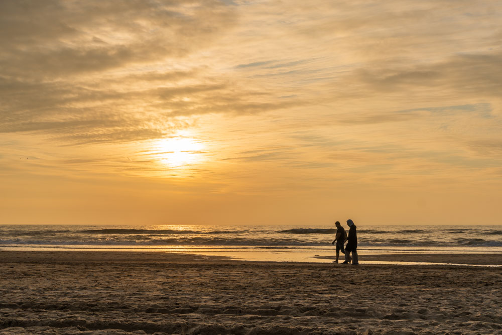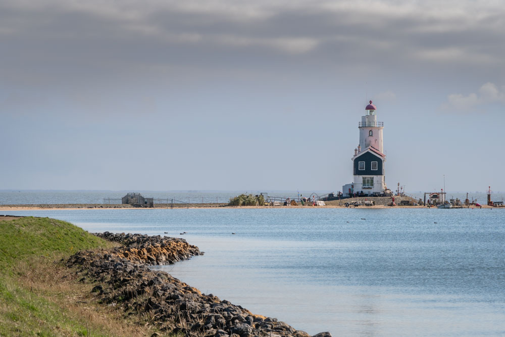 Lighthouse the Horse of Marken seen from a less familiar perspective. Markermeer, Marken, the NetherlandsEvening walk by the sea. Orange sunset with two hikers – silhouettes. Egmond aan Zee, North Holland, Netherlands.Playing along the high tide line until the sun goes down Two children play for a while by the water at sunset. Egmond aan Zee, North Holland, Netherlands.