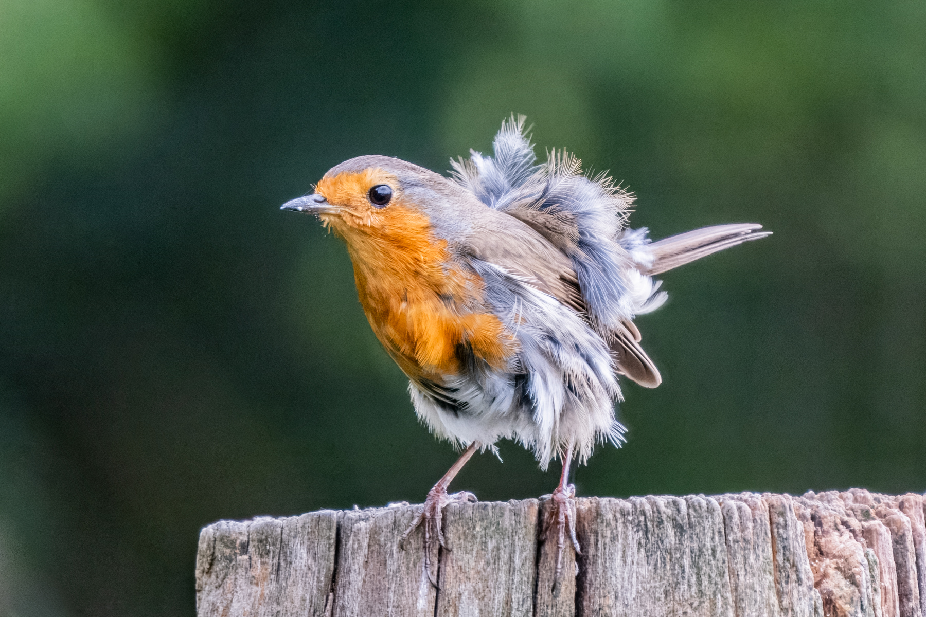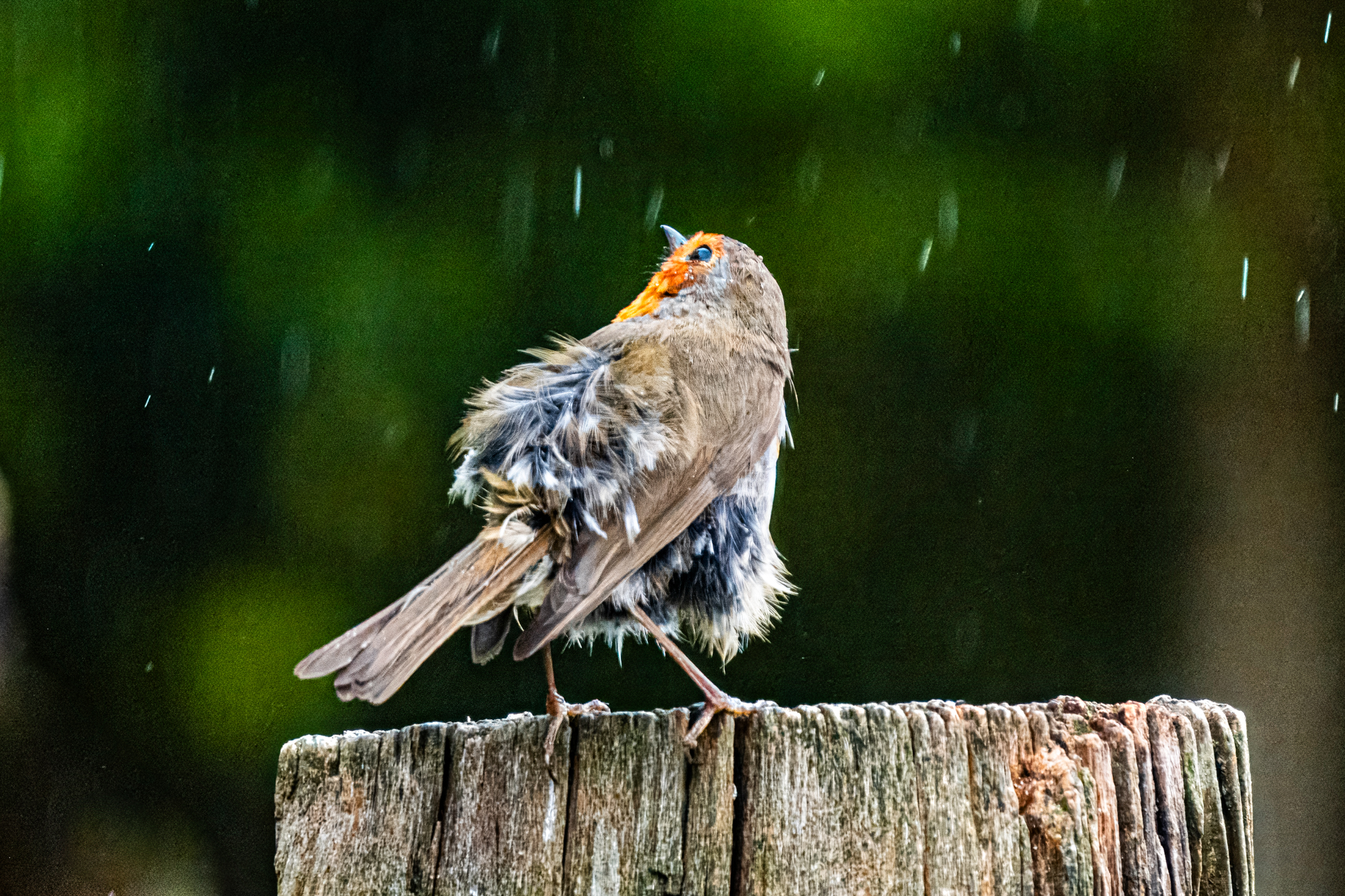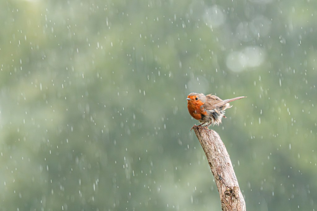 During our day at the bird photography hut in Kalmthout, it was especially the young robin, in full moult, that stole the show for me. He seemed very surprised when it suddenly started raining hard… Maybe his first summer downpour??