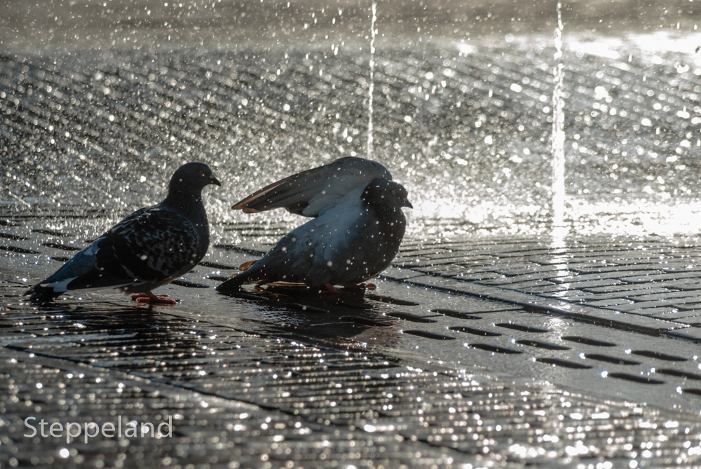 Early morning in Leiden, the Netherlands. A fountain on the Beestenmarkt. Low sunlight, and some pigeons. With a little fantasy, one doesn’t need much to make a fairytale 🙂 . Feel free to add your own version of the conversation 😉 .